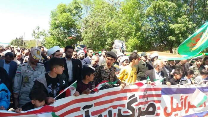 امروز همچنین در راهپیمایی روز جهانی قدس خلخال که از محل میدان معلم آغاز و به سمت میعادگاه نماز جمعه ادامه یافت ، هزاران نفر از اقشار مختلف این شهر ضمن اعلام همبستگی مجدد با مردم مظلوم و ستمدیده فلسطین جنایات رژیم غاصب صهیونیستی و کودک کش اسرائیل و کشتار بیرحمانه مردم مظلوم فلسطین از سوی این رژیم جنایتکار را محکوم کردند.